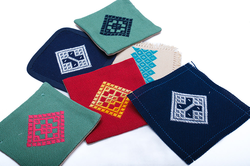 定番の麻の葉や七宝などから現代風にアレンジしたデザイン、一目刺しなどバラエティー豊かに取り揃えています。実用性もありつつ、インテリア雑貨としてもお楽しみいただけます。