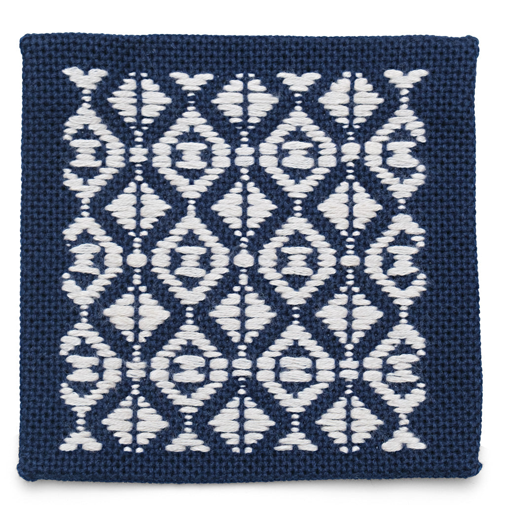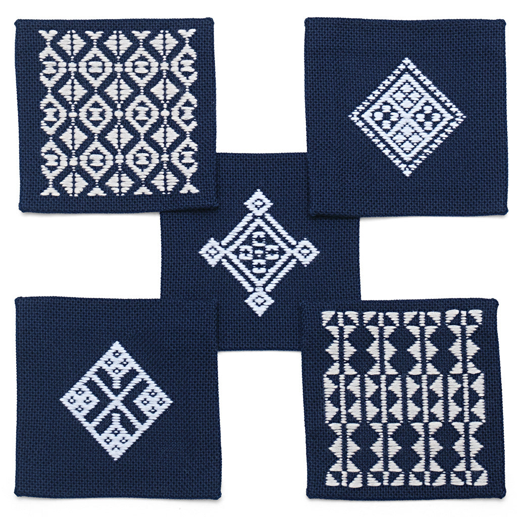 【出来上がり寸法】各約縦10cmx横10cm【キット内容】こぎん糸(綿100%)こぎん布(コングレス)こぎん針カラー図案付説明書【目数】18カウント/1インチ・約70目/10cm
