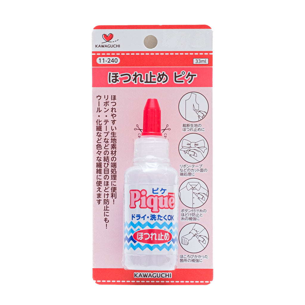 布はじに塗るとほつれを止める事ができます。コングレスなどのほつれやすい布に効果的で、ほつれを気にせずにこぎん刺しをする事ができます。